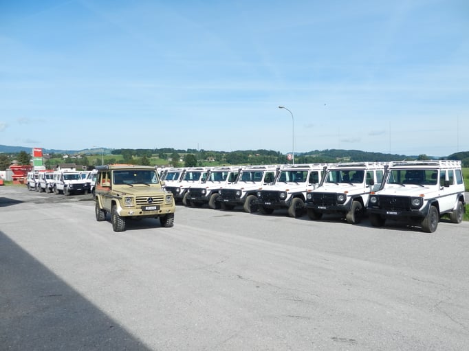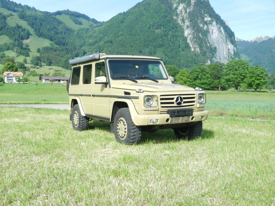 Das Fahrwerk wurde den Anforderungen angepasst. Hinten gelangen Original-Federn aus einem anderen G-Modell zum EInsatz. Vorne wurden ORC-Federn montiert. Etwas vom Besten sind die Stossdämpfer von Reiger. Reiger ist ein Hersteller von Rallyraid und WRC-tauglichen Stossdämpfern. Die Stossdämpfer sind in Zug und Druckstufe einstellbar. So ist eine perfekte Abstimmung des Fahrverhaltens möglich. Durch die Ausgleichsbehälter sind die Stossdämpfer besonders wärmeresistent. Die Standfestigkeit und die Lebensdauer sind dadurch ausserordentlich. Die Stossdämpfer können gewartet werden.