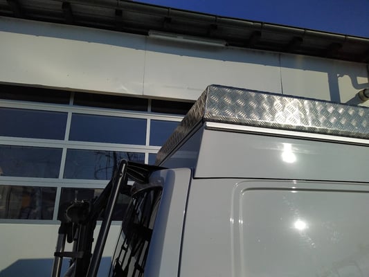 Gestapelt wird die 2 Teilige Spezialkonstuktion über dem Fahrerhaus